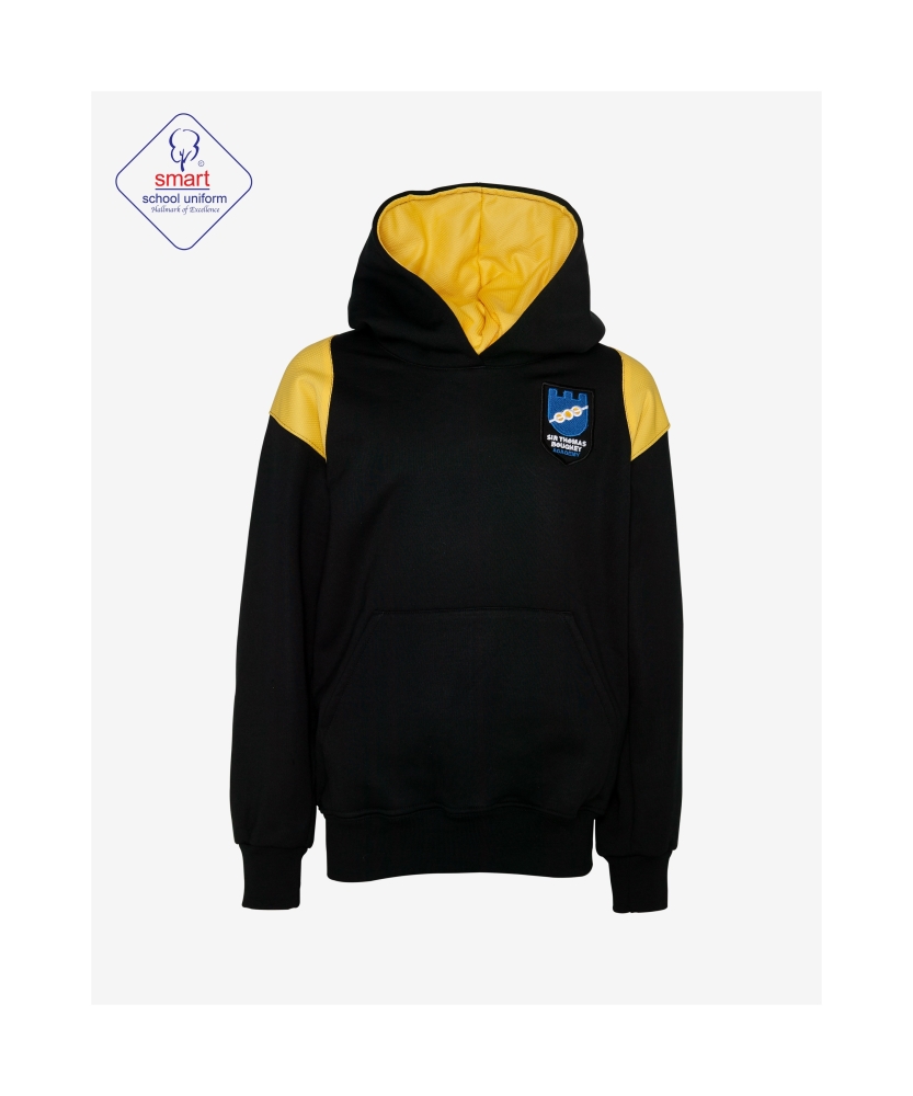 smart UNISEX black hoodie with embroidered school logo.